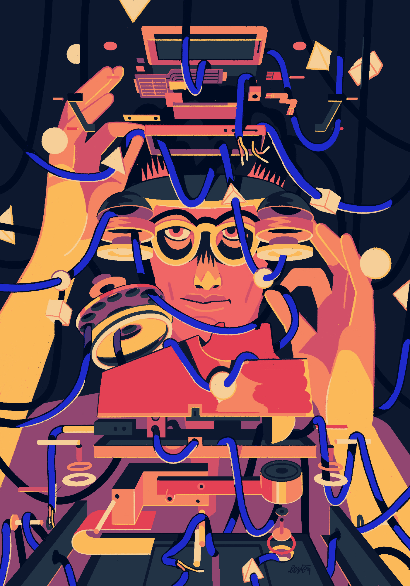 My illustration for an article by Lav Varshney “To catalyze transformative innovation, consider the history of sociotechnical change” A deconstructed history of telecommunications from the telegraphy to the smartphone.Art directed by Mercedes Bazan