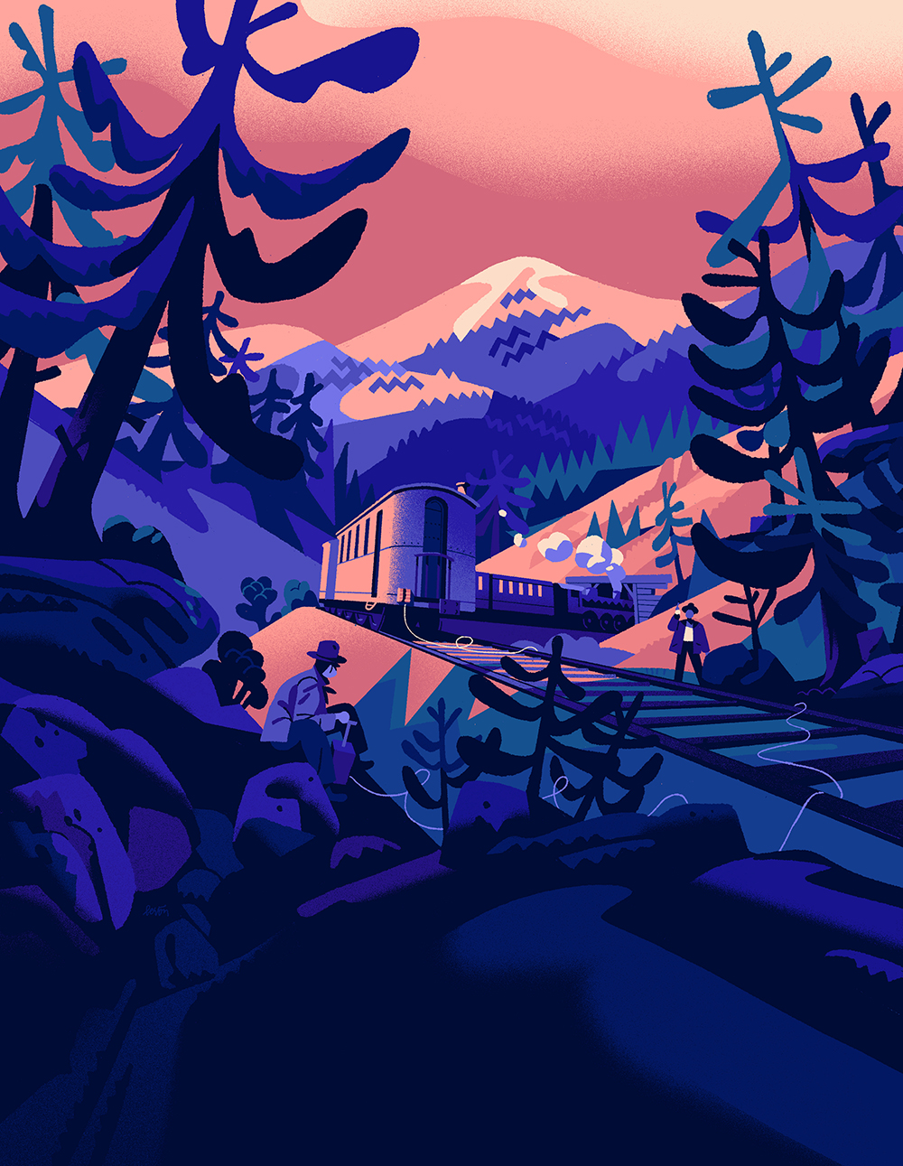 For Portland Monthly the article cover illustration of “How a Botched Train Robbery Spawned CSI”.
